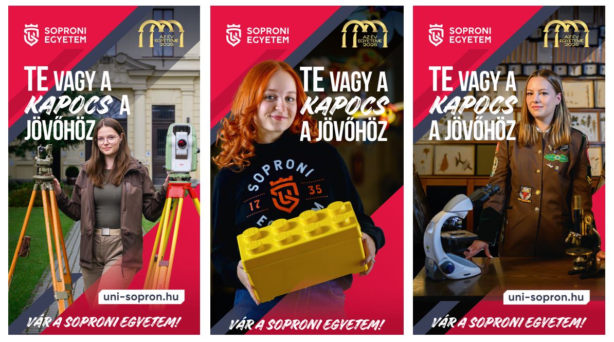 Te vagy a kapocs a jövőhöz! – így szól a Soproni Egyetem idei beiskolázási kampányának szlogenje. A Nyugat-Dunántúlon élők a nagyvárosok digitális hirdetőtábláin láthatják már a felsőoktatási intézmény diákjaival készült egyetemi hirdetéseket. A december 10-ei nyílt nap iránt érdeklődők pedig a social média csatornákon találkozhatnak a színes és egyedi üzenetekkel. A Soproni Egyetem felvételi kampánya elstartolt és számos meglepetést tartogat.