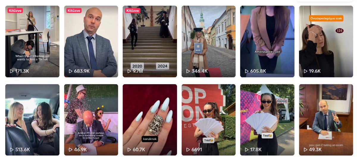 Minden Soproni Egyetemi TikTok-videónk átgondolt és precíz munka eredménye. Ennek köszönhető, hogy TikTok-csatornánk (https://www.tiktok.com/@soproniegyetem) közel egymillió like-kal büszkélkedhet, ami nemzetközi szinten is kimagasló, országosan pedig messze a legmagasabb a felsőoktatásban – hangsúlyozza Dr. Pirger Tamás közösségi média szakértő, az Egyetem adjunktusa.