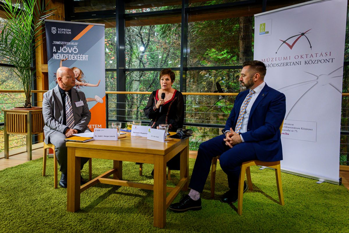 A program további részében először a múzeumok jövőjéről és a várható tendenciákról beszélgetett Dr. Foster Hannah Daisy, a Néprajzi Múzeum muzeológusa, a nemrég megjelent Múzeum – a veszélyeztetett faj című könyv szerzője, valamint Dr. Sári Zsolt, a Szabadtéri Néprajzi Múzeum főigazgató-helyettese és az ICOM Magyarország elnöke, majd Nagy Magdolna, a Szabadtéri Néprajzi Múzeum Múzeumi Oktatási és Módszertani Központjának igazgatója az elmúlt húsz év múzeumpedagógiai fejleszéseit foglalta össze. Joó Emese, a Magyar Cirkuszművészeti Múzeum, Könyvtár és Archívum vezetője előadásában a múzeumok társadalmi szerepvállalásának erősítésére hívta fel a figyelmet. A délután folyamán a résztvevők megismerkedhettek a soproni erdészeti és faipari egyetemi hagyományok egyik különlegességével, a tradicionális egyetemi viseletként máig élő Waldennel. A bemutatót moderált beszélgetés követte arról, hogy miként vált a diákok korhű viseletbe öltözése a múzeumi gyakorlat részévé. A nap zárásaként négy izgalmas, párhuzamos program várta az érdeklődőket: az egyetemi arborétumban zseblámpás felfedező séta, a Lenck-villában textil-alkotó workshop, a Múzeumnegyedben gasztrotörténeti barangolás és a soproni népszavazást feldolgozó emlékezetpedagógiai foglalkozás.