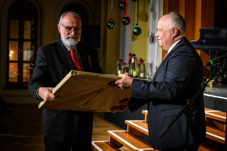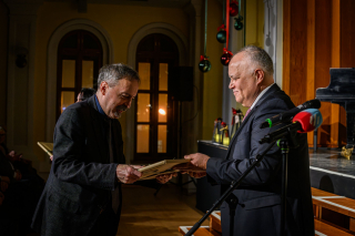 Az adventi hangverseny idén rendhagyó módon a városi elismerésben részesülő egyetemi kollégák megünneplésének is méltó keretet adott. A Hűség-nap kitüntetettjei – köztük Prof. Dr. Faragó Sándor, Dr. Kovács-Gombos Gábor és Horváth József – valamint a „Sopronért Emlékérem” díjazottjai az egyetem és a város közösségét gazdagító munkájukért részesültek köszöntésben.